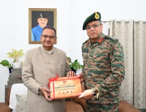 देहरादून, 26 फरवरी। भारतीय सेना की मध्य कमान के आर्मी कमाण्डर लेफ्टिनेंट जनरल अनिंद्य सेनगुप्ता ने आज उत्तराखण्ड के सैनिक कल्याण मंत्री गणेश जोशी से उनके शासकीय आवास में शिष्टाचार भेंट की। इस दौरान राज्य में पूर्व सैनिकों के कल्याण, सैन्य परंपराओं के संरक्षण तथा नागरिक-सैन्य समन्वय से जुड़े विभिन्न विषयों पर सकारात्मक चर्चा हुई। इस दौरान आर्मी कमाण्डर ने सैनिक कल्याण मंत्री को सूर्या कमाण्ड की पुस्तक ‘‘द् वॉयेज ऑफ सूर्या कमाण्ड‘‘ भेंट की।