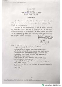 इस संबंध में उप सचिव अनिल कुमार पाण्डे द्वारा आदेश जारी किया गया